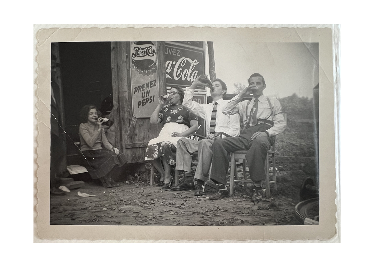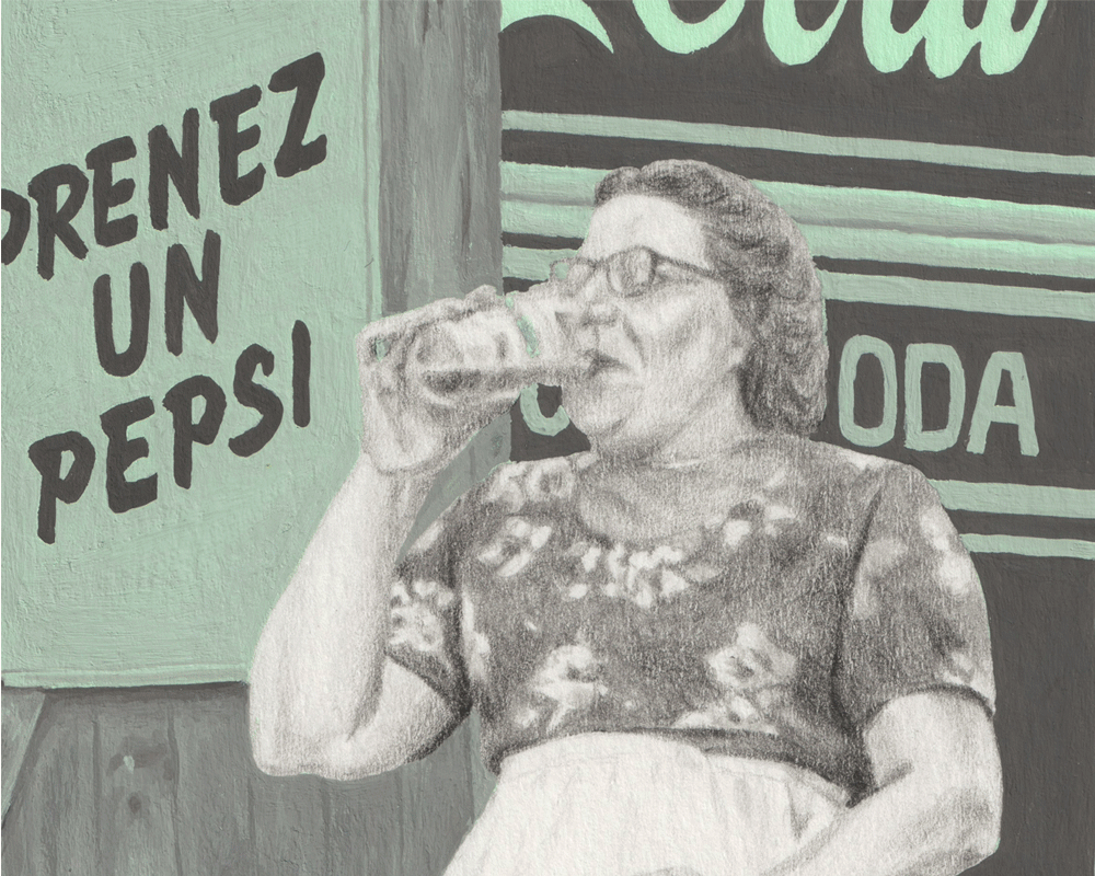 In the image my grandmother is sat in front of the food trailer my grandparents used to operate on weekends, to make ends meet. A fact I only learnt about when I showed my mum the reference photo. There are still so many things I don’t know about my grandmother. I’ll keep looking for clues in photos of her.