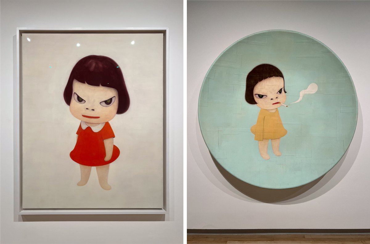 I wasn’t attracted to his work based on the few images I’d seen of it. I like Japanese animes, but I didn’t think the manga aesthetic of Nara’s work was interesting as works of art. They looked too flat to me. I was very wrong!! Never under-estimate how bad photos are at showing you all the subtleties of art.