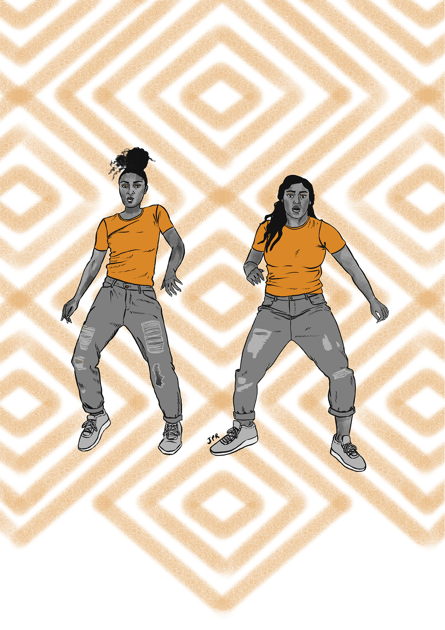 Triptych inspired by a photo of singer Sarahmée taken by